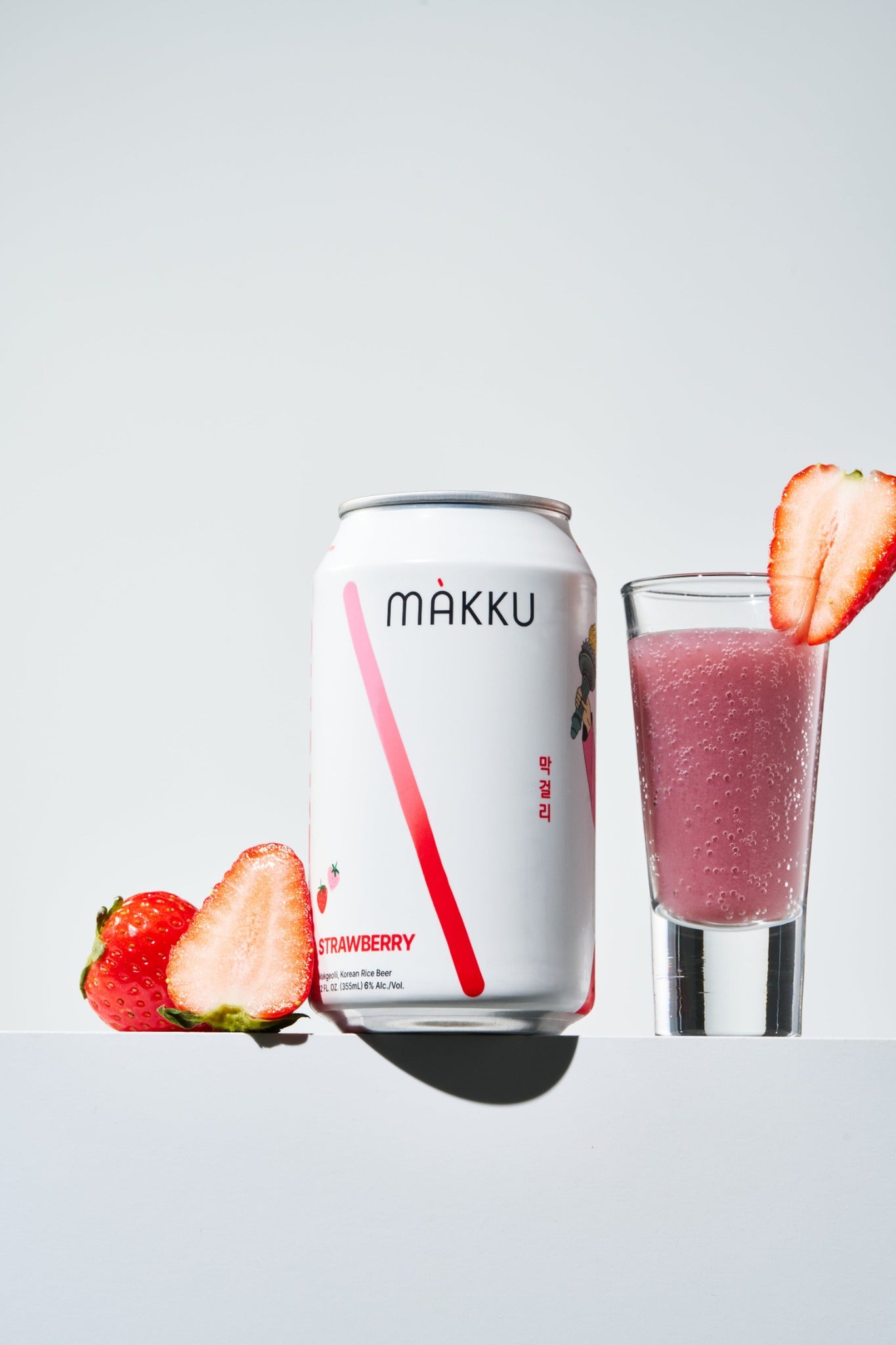 Makku Strawberry infuses strawberry purée into our original rice brew, giving it a vibrant red hue and velvety texture. Each sip bursts with the lush, juicy flavor of ripe strawberries — as beautiful and delightful as it sounds.
